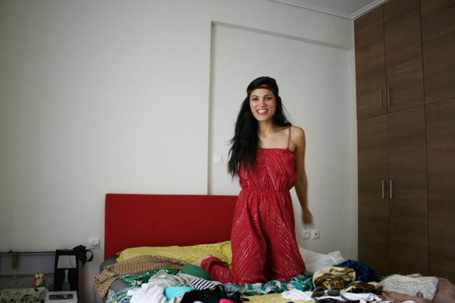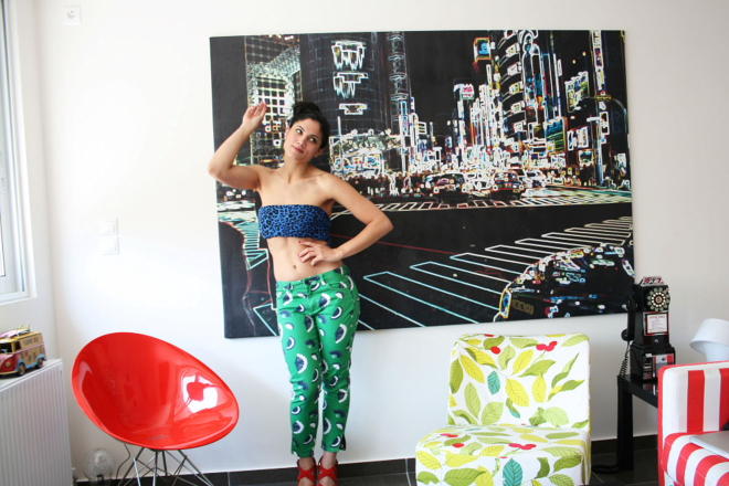 Η διακόσμηση κινείται σε minimal γραμμές, ενώ τα έντονα χρώματα κυριαρχούν παντού. Η Μαίρη ποζάρει στο living room του διαμερίσματός της πάνω στον ριγέ άσπρο -κόκκινο καναπέ της με νεοϋρκέζικο αέρα, αλλά και στους άλλους χώρους του όπως την κουζίνα, την κρεββατοκάμαρα και το μπαλκόνι.