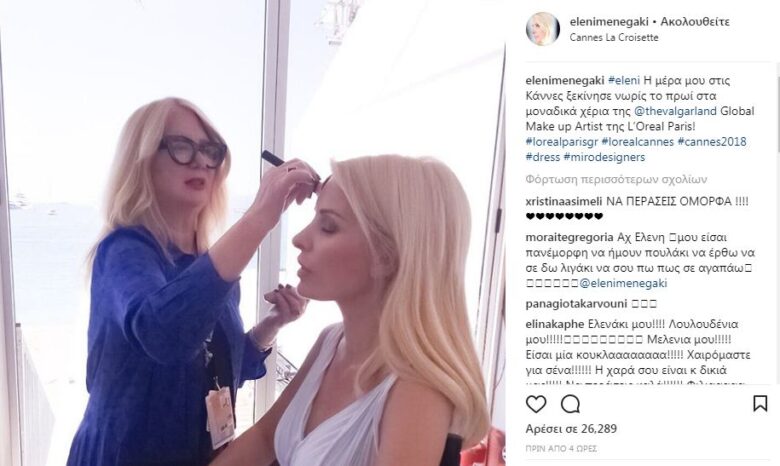 Σήμερα το πρωί ανέβασε στο Instagram της μερικές φωτογραφίες με την Global make up artist της L’Oréal, Val Garland, επί τω έργω.