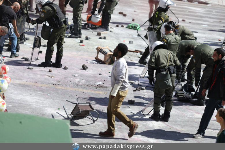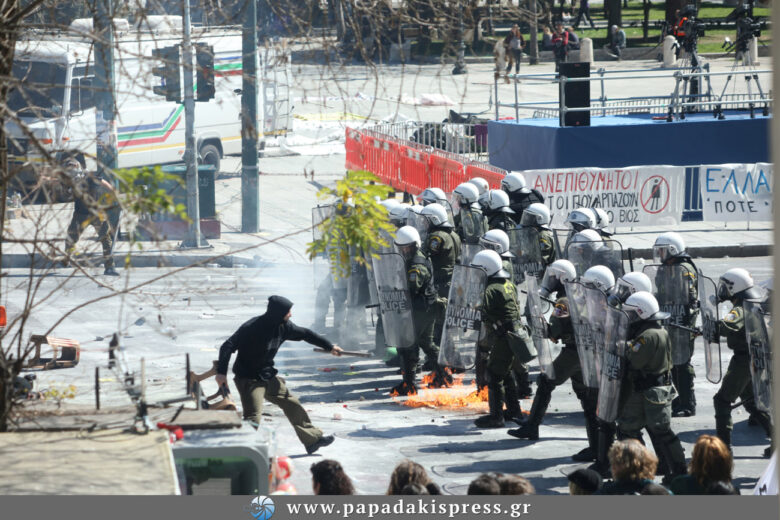 Σε πεδίο μάχης μετά από διαδήλωση, μετατράπηκε το Σύνταγμα στο κέντρο της Αθήνας για τις ανάγκες της ταινίας «Βorn to be murdered», της οποία τα γυρίσματα είναι σε εξέλιξη.