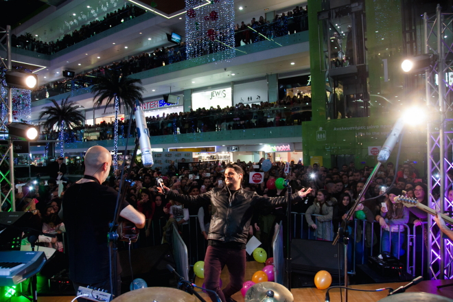 Οι δύο αγαπητοί καλλιτέχνες τραγούδησαν ζωντανά στην ειδικά διαμορφωμένη σκηνή που έχει στηθεί στο αγαπημένο εμπορικό κέντρο των Νοτίων Προαστίων και απογείωσαν το κέφι με τα τραγούδια του, χαρίζοντας στο κοινό μοναδικές στιγμές.