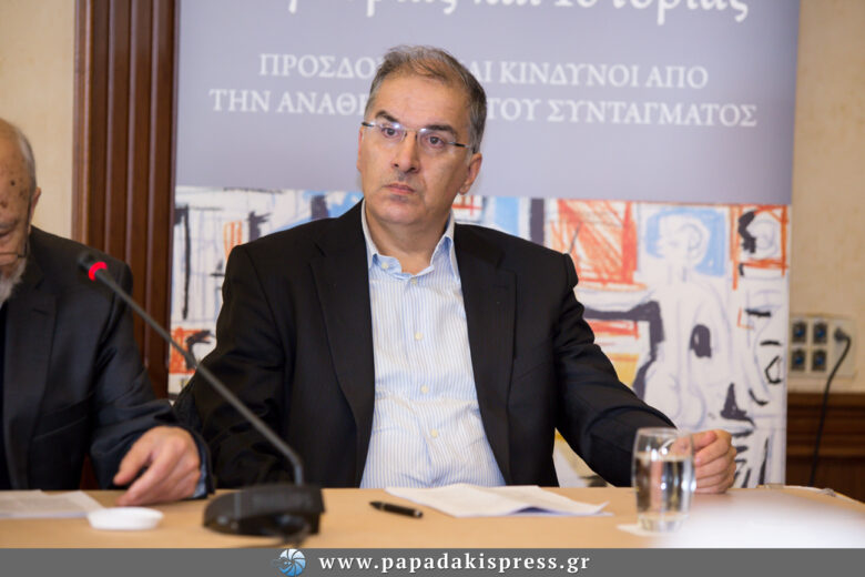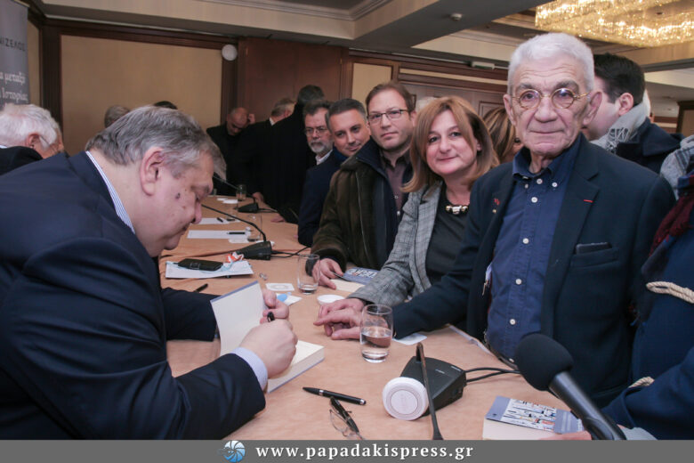 Ο πρώην υπουργός παρουσίασε στο Electra Palace στην Θεσσαλονίκη το νέο του βιβλίο “Η Δημοκρατία μεταξύ συγκυρίας και Ιστορίας Προσδοκίες και κίνδυνοι από την αναθεώρηση του Συντάγματος…” Πλήθος κόσμου έδωσε το “παρών” ανάμεσά τους και ο Δήμαρχος Θεσσαλονίκης κύριος Μπουτάρης.