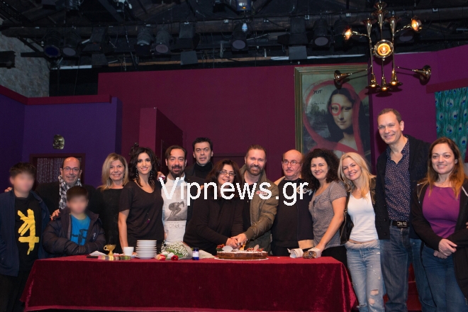 Στην κοπή της πίττας ήταν όλοι οι συντελεστές της παράστασης και η ατμόσφαιρα, όπως φυσικά χαρούμενη, με τους ηθοποιούς να έχουν όρεξη για γέλια και πειράγματα.