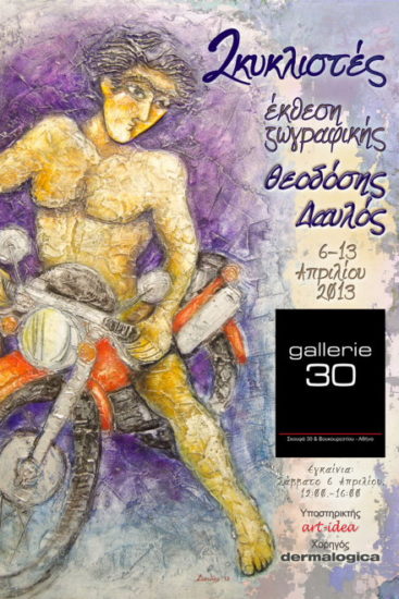 O εικαστικός δημιουργός Θεοδόσης Δαυλός, παρουσιάζει από το Σάββατο 6 Απριλίου, στην Gallerie 30 στο Κολωνάκι, την έκθεση ζωγνραφικής με τίτλο «2κυκλιστές».