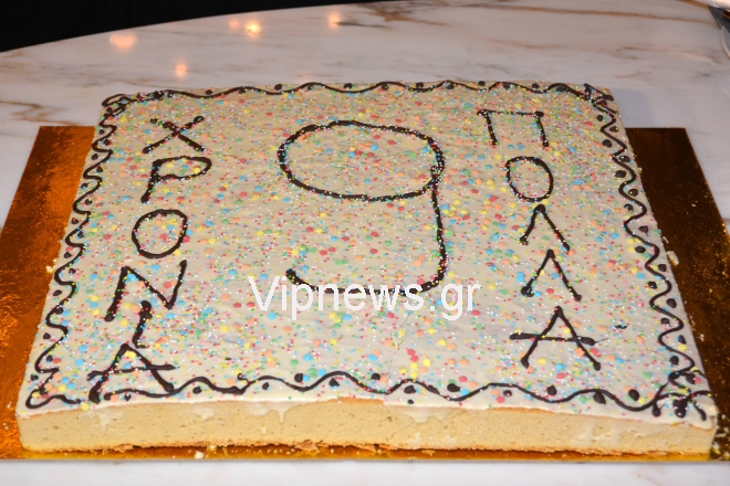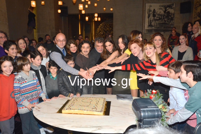 Το απόγευμα της Τετάρτης 6 Ιανουαρίου, ο θίασος και τα μέλη της παράστασης, συγκεντρώθηκαν στο Pantheon και όλοι μαζί έκοψαν την τούρτα και αντάλλαξαν ευχές για τη νέα χρονιά. Παρόντες όλοι οι ηθοποιοί, ο Βασίλης Χαραλαμπόπουλος και οι κυρίες της παράστασης Μάρω Κοντού, Κατερίνα Λέχου, Έλενα Παπαρίζου, Κατερίνα Παπουτσάκη, Τάνια Τρύπη, Νάντια Μπουλέ και Αγορίτσα Οικονόμου, οι οποίοι ήταν χαμογελαστοί και είχαν όρεξη για αστεία και κουβέντα.