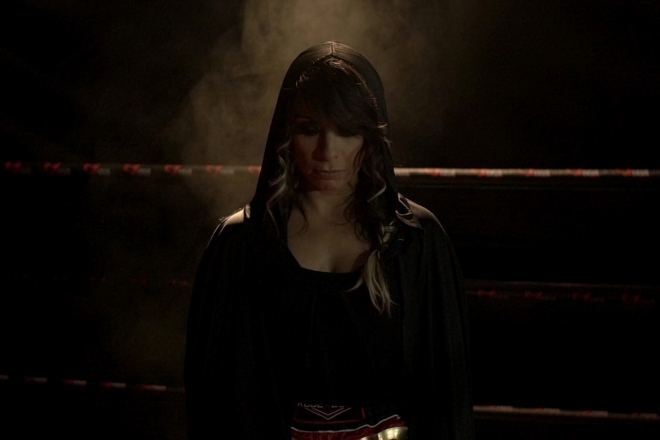 Η αμφίεση της θυμίζει αθλητή που είναι έτοιμος για αγώνα πάλης. Είναι έτοιμη και τον περιμένει….