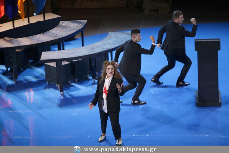 Πρόκειται για την πρώτη συνεργασία του Θεάτρου Τέχνης Καρόλου Κουν και της Εθνικής Λυρικής Σκηνής, η οποία ανέβηκε σε μετάφραση – λιμπρέτο – μουσική του Σταμάτη Κραουνάκη και σκηνοθεσία της Μαριάννας Κάλμπαρη. Στο ρόλο του Πραξαγόρα, εμφανίστηκε η Σοφία Φιλιππίδου, ενώ στην παράσταση συμμετέχει και ο Σταμάτης Κραουνάκης.