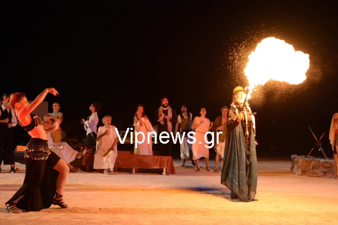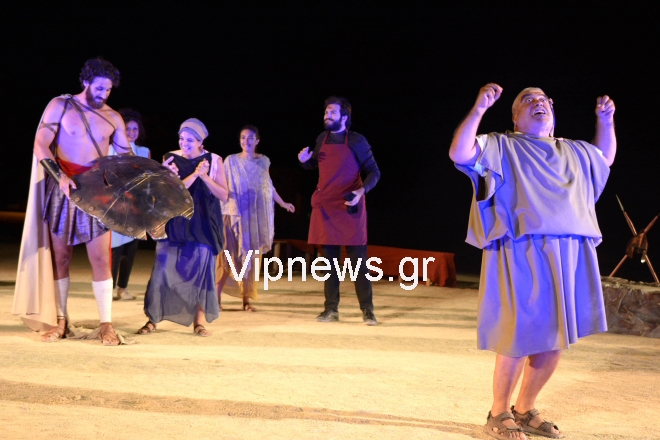 Πλήθος κόσμου παρακολούθησε την παράσταση «Η Ασπίς & Το Συμπόσιο» Μενάνδρου και Λουκιανού στο θέατρο Πέτρας με τον Δημήτρη Πιατά.