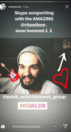 Τους δύο καλλιτέχνες έφερε σε επαφή η Panik Records, με την «υπογραφή» της οποίας θα κυκλοφορήσει σύντομα το ιδιαίτερο project – έκπληξη! Ο πολυτάλαντος frontman του συγκροτήματος MEΛISSES και η παγκοσμίου φήμης Αμερικανίδα ηθοποιός, τραγουδίστρια και παραγωγός αποκάλυψαν την επικείμενη συνεργασία τους με αναρτήσεις που έκαναν στα social media, μετά από ένα δημιουργικό Skype meeting που έκαναν το βράδυ της Πέμπτης. «Γειά σας Έλληνες φίλοι μου! Ο εξωφρενικά ταλαντούχος τραγουδιστής, συνθέτης και rock star Χρήστος Μάστορας και εγώ ετοιμάζουμε κάτι για εσάς! Ανυπομονούμε να το μοιραστούμε μαζί σας! Κάποιες φορές γράφεις τραγούδια πάνω από τα σύννεφα», έγραψε η Rita Wilson στη λεζάντα της φωτογραφίας με τον Χρήστο Μάστορα.