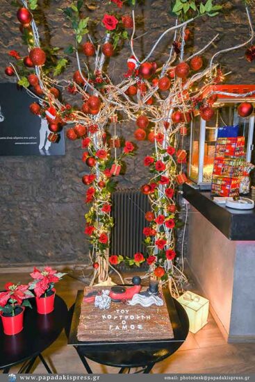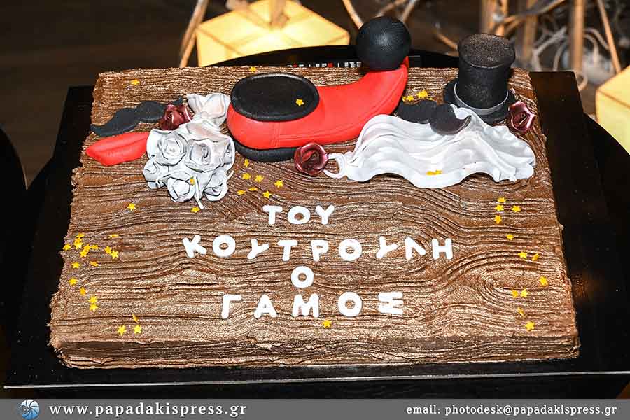 Ένα μεγάλο κόκκινο τσαρούχι και μια νυφική ανθοδέσμη κοσμούσαν την πρωτοχρονιάτικη πίτα που έκοψε ο θίασος της παράστασης «Του Κουτρούλη ο γάμος».