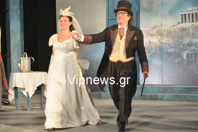 Πλήθος κόσμου παρακολούθησε την παράσταση «του Κουτρούλη ο γάμος» στο Κηποθέατρο Παπάγου με πρωταγωνιστές τον Γιάννη Βούρο και την Τάνια Τρύπη.