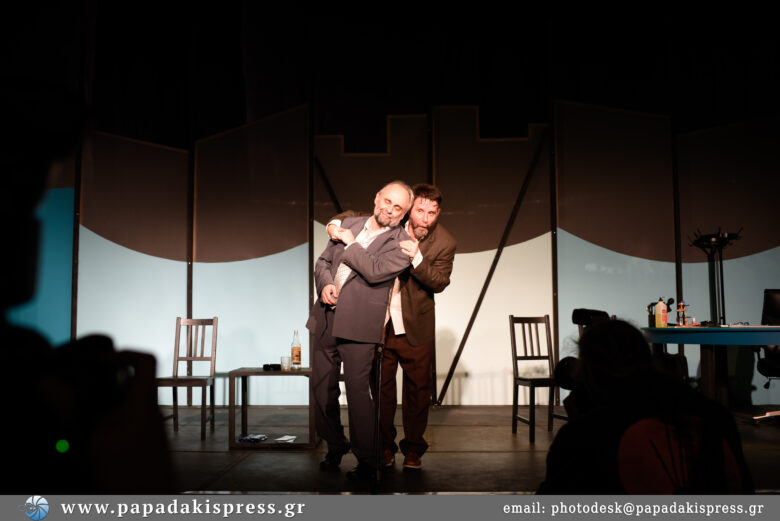 Στους δύο ήρωες του έργου απολαμβάνουμε τον Σωτήρη Χατζάκη και τον Δημήτρη Μυλωνά που υπογράφει και τη σκηνοθεσία.