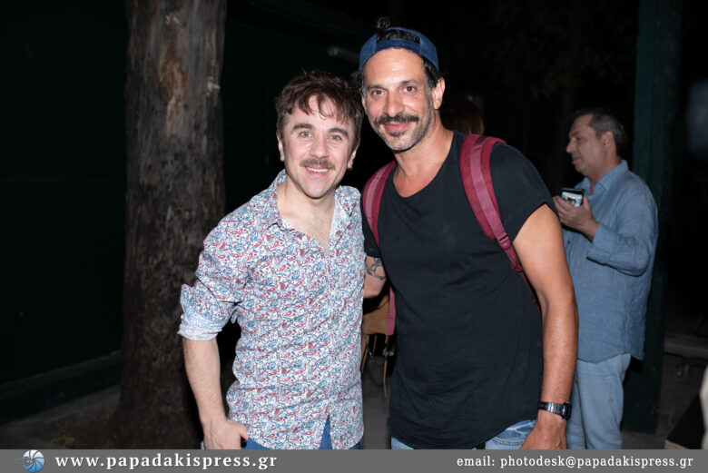 Η Δέσποινα Βανδή απλή και εντυπωσιακή, με ένα τζιν σορτσάκι και κόκκινο πουκάμισο παρακολούθησε την κωμωδία.  Γέλασε με την ψυχή της και στο τέλος της παράστασης πήγε στα παρασκήνια για να συγχαρεί τους 3 πρωταγωνιστές.