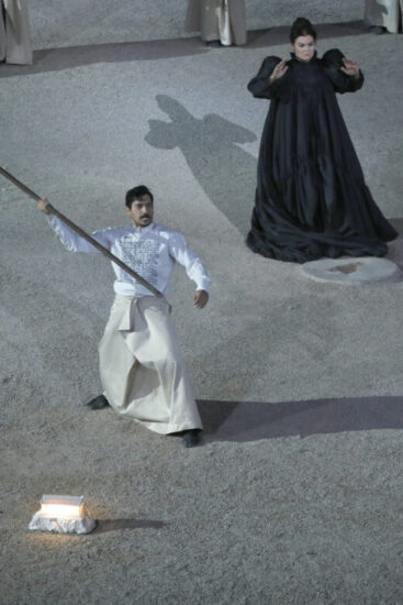Η αρχαία τραγωδία “Πέρσες” του Αισχύλου από το Εθνικό Θέατρο, σε σκηνοθεσία Δημήτρη Λιγνάδη, ανέβηκε τη Παρασκευή 24 Ιουλίου, στο Αρχαίο Θέατρο της Επιδαυρού.