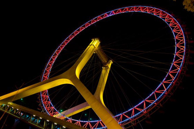 Ένα εντυπωσιακό θέαμα έχουν την ευκαιρία να απολαύσουν όσοι επισκέπτονται την Κινεζική πόλη Tianjin, στην οποία δεσπόζει μια τεράστια ρόδα λούνα πάρκ πάνω ακριβώς σε μια γέφυρα.
