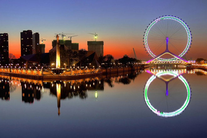 Το Tianjin Eye, όπως έχει ονομαστεί η συγκεκριμένη, εντυπωσιακή κατασκευή, βρίσκεται πάνω στη γέφυρα Yongle του ποταμού Hai και είναι ουσιαστικά η μόνη ρόδα λούνα παρκ που έχει κατασκευαστεί πάνω σε ποτάμι.