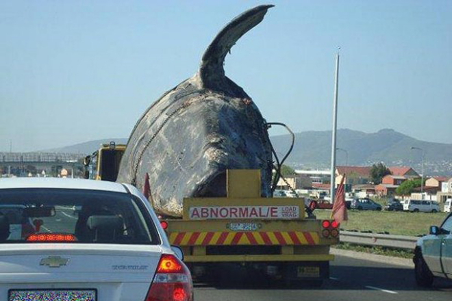Έτσι φόρτωσαν το κουφάρι της στην καρότσα ενός μεγάλου φορτηγού και τη μετέφεραν, όπως θα γινόταν με οποιοδήποτε άλλο αντικείμενο – δια μέσου των εθνικών οδών. Το ασυνήθιστο φορτίο (όπως σημειώνει και η πινακίδα του φορτηγού) ωστόσο προκάλεσε το ενδιαφέρον των οδηγών.