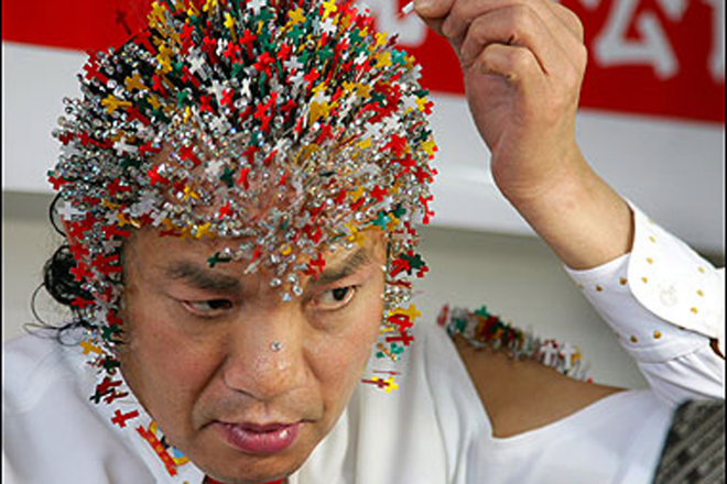 Ο Wei Shengchu από την Κίνα κρατάει το ρεκόρ του ανθρώπου που έβαλε 2.009 βελόνες στο κεφάλι του.