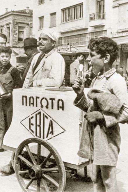 Έπειτα φόρτωναν το βαρέλι στη καρότσα τους και έπαιρναν δρόμο για να συναντήσουν τους πελάτες τους. Κατά διαστήματα έριχναν κομμάτια πάγου εξωτερικά για να μη λιώσει το παγωτό. Έτσι πήγαιναν από δρόμο σε δρόμο και από γειτονιά σε γειτονιά για να γεμίσουν τα χωνάκια τους με τη δροσερή νοστιμιά που όσοι είχαν προλάβει να φάνε, δεν την ξεχνούν ποτέ…
