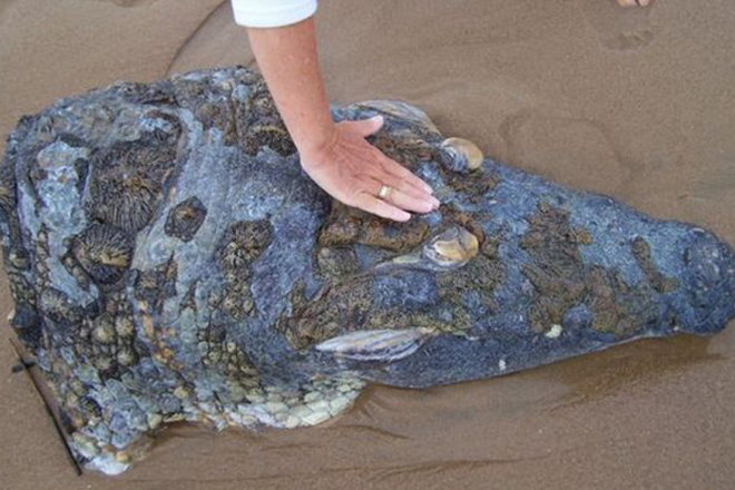 Η θάλασσα είχε μόλις ξεβράσει το τεράστιο κεφάλι ενός κροκόδειλου!
