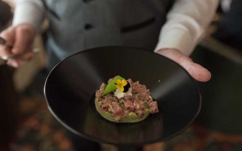 Τόνος ταρτάρ, γουακαμόλε και μους ούζου