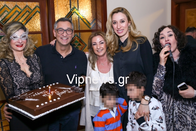 Στις 12:00 τα μεσάνυκτα ο πιανίστας άρχισε να παίζει το “Happy Birthday” τραγούδι, με όλους τους παρισταμένους να τον συνοδεύουν με μία φωνή, ενώ η φίλη του ζεύγους, Βίβιαν Σαμούρη έκανε εντυπωσιακή εμφάνιση στην αίθουσα κρατώντας την τούρτα έκπληξη, που είχε ετοιμάσει ο σεφ του ξενοδοχείου, για να σβήσει ο έκπληκτος εορτάζων τα κεράκια του.