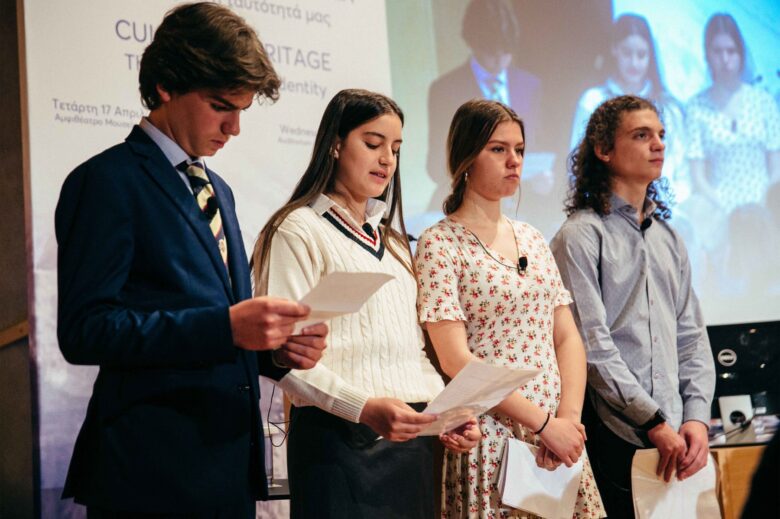 Στην συνέχεια τέσσερις μαθητές Γυμνασίου και Λυκείου: ο Χριστόδουλος Κατσαρός, μαθητής της Α΄ Λυκείου του 9ου Γενικού Λυκείου Αθηνών, η Μαριάνθη Κοσκινά, μαθήτρια της Β Λυκείου του 26ου Γενικού Λυκείου Αθηνών, η Χαρά Μωραϊτάκη, μαθήτρια της Γ Γυμνασίου του Κολλεγίου Ψυχικού και ο Αλέξης Πολίτης, μαθητής της Γ’ Γυμνασίου των Εκπαιδευτηρίων Γείτονα, εκπροσωπώντας την νέα γενιά, έστειλαν το δικό τους μήνυμα για την ανάγκη προστασίας και σεβασμού των μνημείων παγκόσμιας κληρονομιάς.