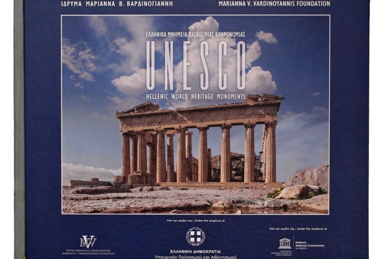 Στο πλαίσιο της εκδήλωσης, η οποία διοργανώθηκε με αφορμή την αυριανή Παγκόσμια Ημέρα Μνημείων και Τοποθεσιών, παρουσιάστηκε η έκδοση του Ιδρύματος «Μαριάννα Β. Βαρδινογιάννη» για τα 18 ελληνικά μνημεία που εντάσσονται στον κατάλογο Παγκόσμιας Κληρονομιάς της UNESCO.