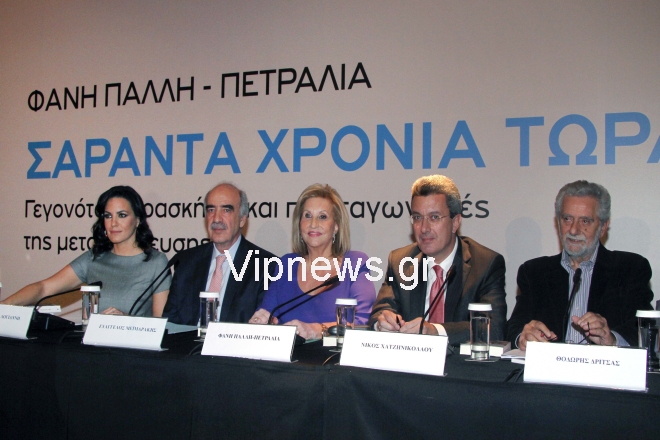Την προσωπική της διαδρομή στην ενεργό πολιτική σκηνή της Ελλάδας αφηγείται η Φάνη-Πάλλη Πετραλιά στο βιβλίο της «Σαράντα χρόνια τώρα: Γεγονότα, παρασκήνια και πρωταγωνιστές της μεταπολίτευσης», το οποίο παρουσίασε τη Τρίτη 9 Δεκεμβρίου, στο ξενοδοχείο Hilton.