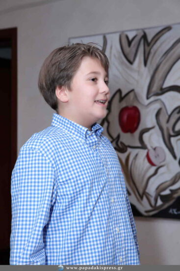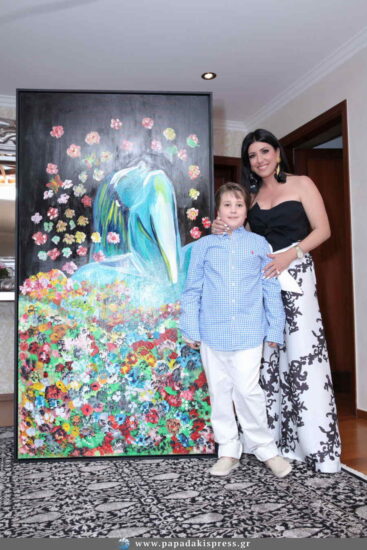 Η λαμπερή οικοδέσποινα, η οποία φημίζεται για την άψογη φιλοξενία της, μετα το δείπνο παρουσίασε το νέο της πίνακα ζωγραφικής με τίτλο «Άνοιξη». Την παρουσίαση του έργου τέχνης, ανέλαβε ο μοναδικός άντρας της παρέας, ο εντεκάχρονος γιος της, Αγάπιος Αγγελίδης, ο οποίος έκλεψε τις εντυπώσεις με τις εκλεπτυσμένες και εύστοχες ατάκες του!