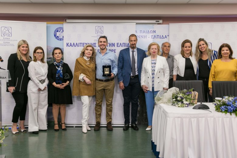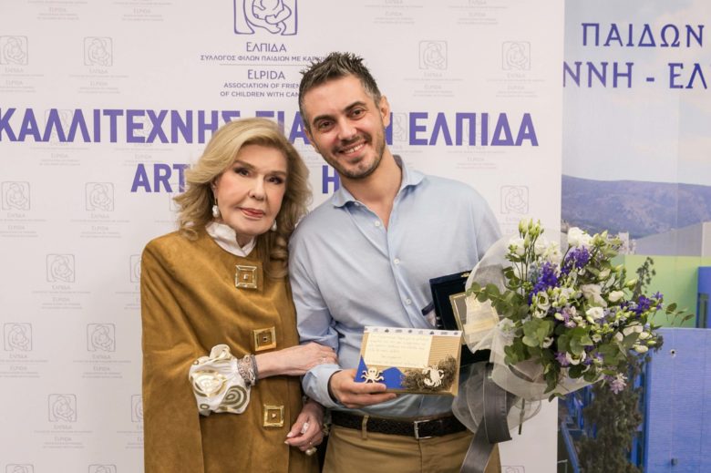 Αμέσως μετά, σε μία σεμνή τελετή, στην οποία έδωσαν το «παρών» ο Διοικητής του Νοσοκομείου Παίδων «Η ΑΓΙΑ ΣΟΦΙΑ» και «Π.&Α. ΚΥΡΙΑΚΟΥ» κύριος Μανώλης Παπασάββας, τα μέλη των Διοικητικών Συμβουλίων των Συλλόγων «ΕΛΠΙΔΑ» και «ΟΡΑΜΑ ΕΛΠΙΔΑΣ», γιατροί και νοσηλευτές, η κυρία Βαρδινογιάννη απένειμε στον Μιχάλη Χατζηγιάννη την Τιμητική Πλακέτα της «ΕΛΠΙΔΑΣ» και τον ανακήρυξε «Καλλιτέχνη για την ΕΛΠΙΔΑ 2019-2021».