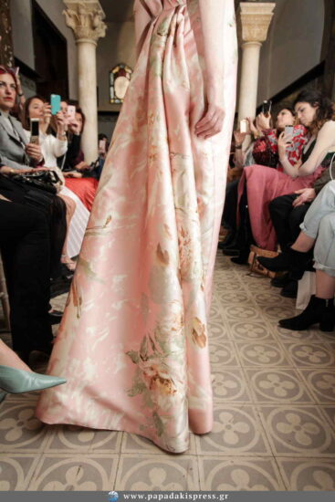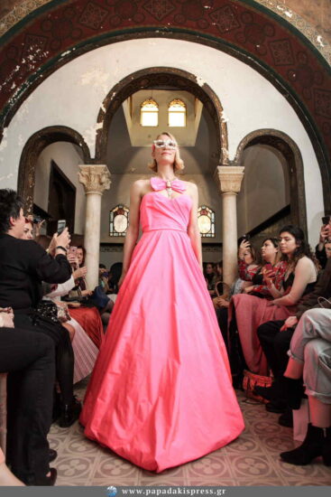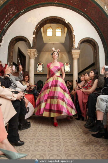 Σε ένα μοναδικό σκηνικό και με φόντο ένα εμβληματικό οίκημα της παλιάς Αθήνας, αυτή τη φορά ο σχεδιαστής μας προσκάλεσε σε ένα νοσταλγικό ταξίδι με πρωταγωνίστριες βασίλισσες, πριγκίπισσες και κυρίες των τιμών. Από την Ελισάβετ στην Άννα Μαρία, που ήταν η πιο νέα και η πιο όμορφη βασίλισσα της Ευρώπης την εποχή του γάμου της στις αρχές της δεκαετίας του ’60.