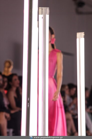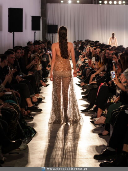 Το Ωδείο Αθηνών που φιλοξένησε για ακόμη μια φορά το show πλημμύρισε απο μικρά 80ς φορέματα, ρευστές παγέτες, patchwork από disco glitter. Καταρράκτες από φτερά πάνω σε λείο μεταξωτό σατέν… Σταθερούς ώμους σε ελέυθερα σχήματα… Ανδρικά και ‘ανδροπρεπή’ κοστούμια σε κρουστό βαμβάκι με εκρήξεις από κρύσταλλα… Αυθάδικα μίνι και θρασύτατα ανοίγματα… Πολυτέλεια και σεξ απήλ! Το styling των μαλλιών ανέλαβε για τρίτη συνεχόμενη χρονιά η Wella Professionals, με προϊόντα από τη must-have επαγγελματική σειρά styling #EIMI. Στα χτενίσματα των μοντέλων κυριάρχησε το δυναμικά wet, undone look, εμπνευσμένο από τον χαρακτήρα της συλλογής,