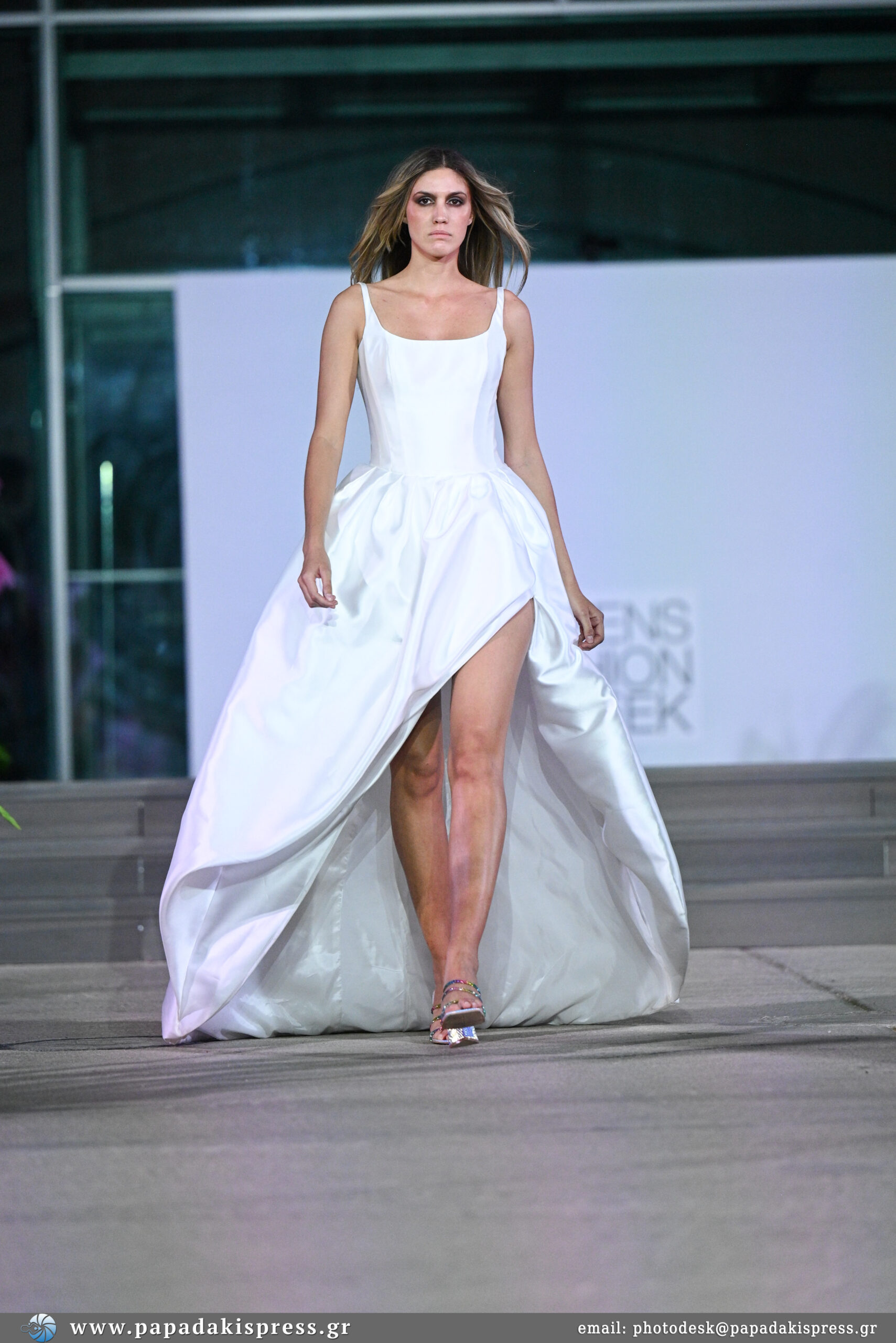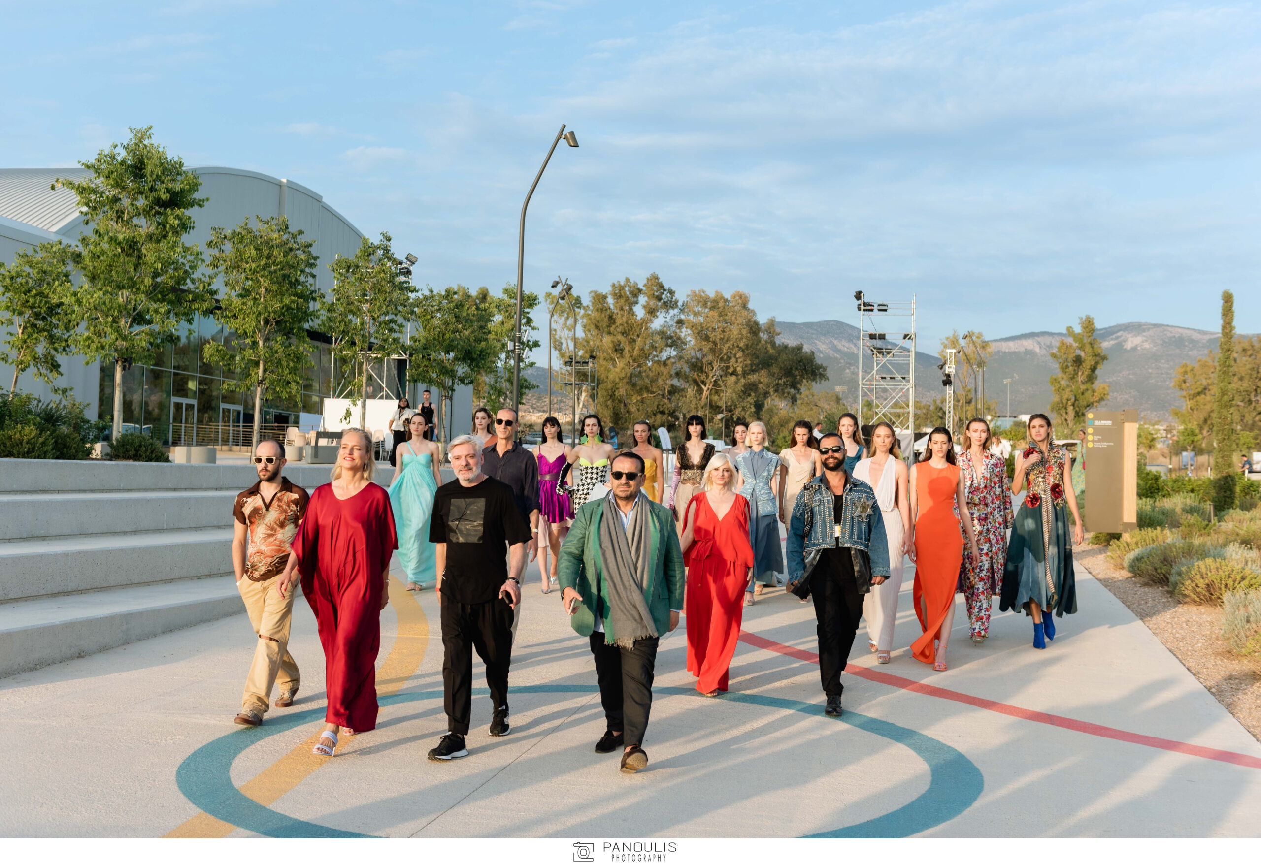 Η 32η Εβδομάδα Μόδας της Αθήνας ξεκίνησε με ένα εντυπωσιακό installation οπού για πρώτη φορά όλοι οι σχεδιαστές της Ένωσης των Σχεδιαστών Μόδας παρουσίασαν ξεχωριστές δημιουργίες. Πιο συγκεκριμένα, 14 Έλληνες καταξιωμένοι σχεδιαστές : Angelos Bradis- Chara Lebessi -Dassios- Denise Eleftheriou -Dimitris Petrou- Ioanna Kourbela- Kathy Heyndels- Konstantinos Tsigaros -Liana Camba -Maison Faliakos – Parthenis- Sotiris Georgiou- Vassilis Zoulias- Yiorgos Eleftheriades πρόσφεραν στους παρευρισκόμενους ένα εντυπωσιακό show μόδας και τέχνης με φόντο το εντυπωσιακό φυσικό σκηνικό του Πάρκου του Ελληνικού το οποίο συνοδευόταν από μια ατμοσφαιρική μουσική που επιμελήθηκε το Love Radio ειδικά για το show. Τη σκυτάλη πήρε ο Konstantinos Tsigaros με την συλλογή Κ7 Konstantinos Tsigaros με τίτλο «Βιωσιμότητα». Ακολούθησε η επίδειξη μόδας του Dassios ο οποίος παρουσίασε την premium συλλογή «Walking in the Glow», Fall/Winter ’23-’24. Εκπληκτικά χρώματα σε αποχρώσεις bronze και χρυσού, με μοναδικά υφάσματα κοσμημένα με παγιέτες αλλα και δημιουργίες από μετάξι και δαντέλα είναι κάποια από τα χαρακτηριστικά της νέας συλλογής. Όλες οι δημιουργίες είναι χειροποίητες και έγιναν με τη τεχνική του μουλάζ και φυσικά δεν λείπει η signature denim συλλογή η οποία ανανεώθηκε με υλικά από παγιέτες με μια νέα τεχνική ανακύκλωσης denim κομματιών σε δημιουργίες φούστας και παντελονιού. Εντυπωσιακό ήταν το φινάλε όπου ο σχεδιαστής περπάτησε με την πρίμα μπαλαρίνα της Εθνικής Λυρικής Σκηνής, Αγγελική Βαενά και ακολουθήσε ο Γιάννης Λεμπέσης που περπάτησε με την μούσα του σχεδιαστή, το μοντέλο Μελίνα Κάππη. Η πρώτη μέρα της Εβδομάδας Μόδας έκλεισε ο οίκος μόδας Kathy Heyndels και ο Marios Togos με την συλλογή «Cocktail» Spring/ Summer 2024 μια συλλογή γεμάτη χρώματα, υφές, γραμμές και σχήματα.