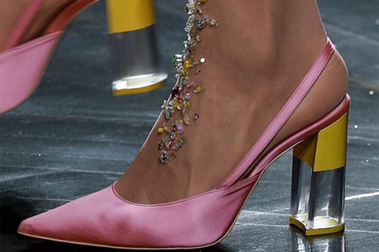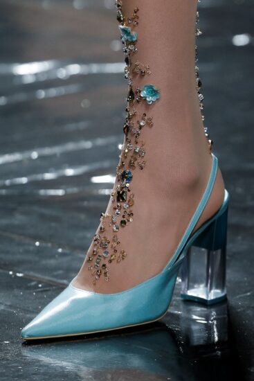 Πολυτελές σατέν έντυσε τα εντυπωσιακά slingback shoes, δίνοντας μία ακόμα πιο θηλυκή νότα στην αποκλειστικά σχεδιασμένη για τις ανάγκες της επίδειξης συλλογή, ενώ τα υποδήματα με glitter προσέθεσαν το απαραίτητο κοριτσίστικο touch.