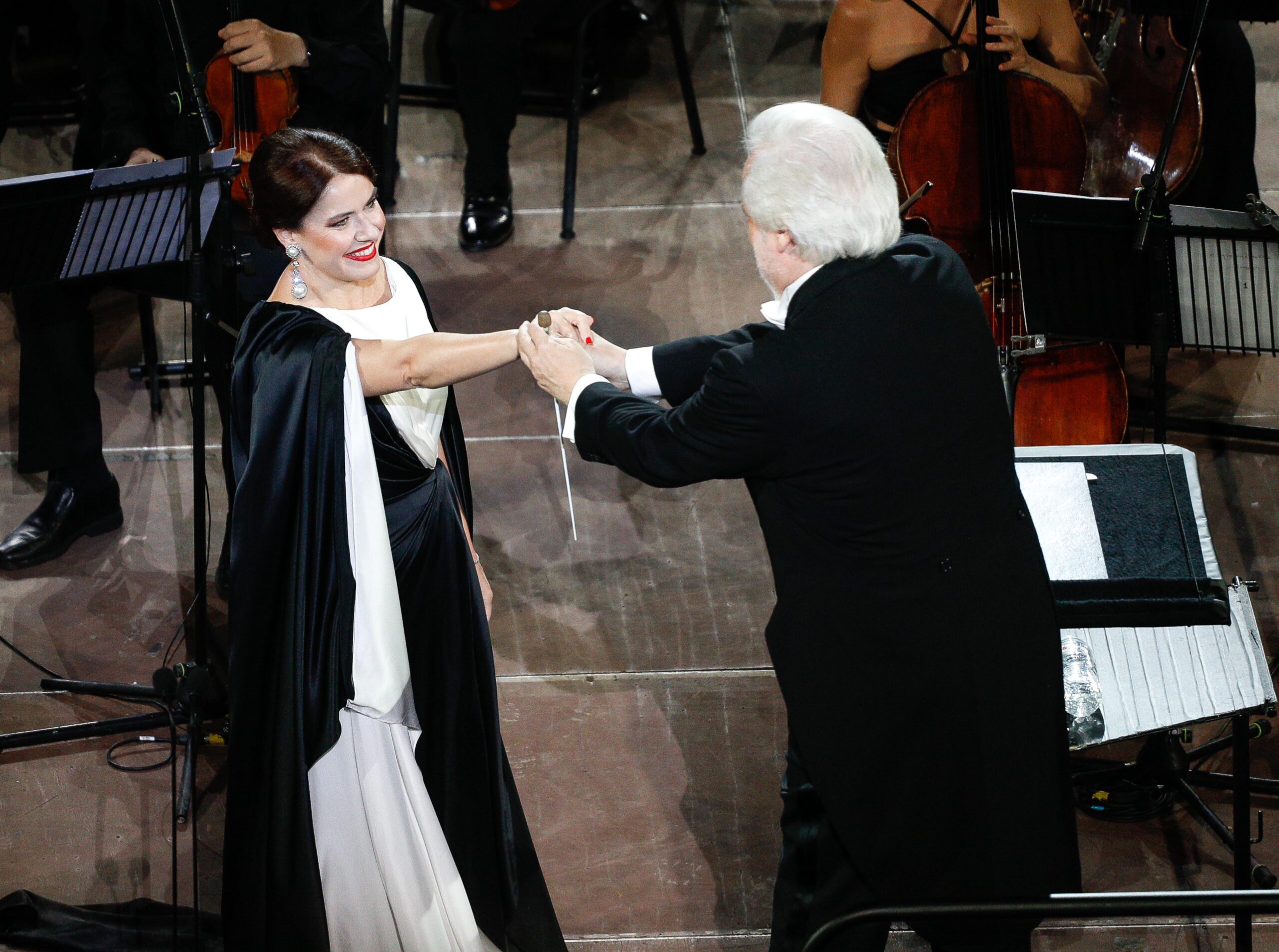 Η ανερχόμενη Ελληνίδα σοπράνο κολορατούρα Νίνα Κουφοχρήστου ερμήνευσε τη σκηνή της τρέλας της Οφηλίας από τον Άμλετ του Τομά. Η σπουδαία Ιταλίδα δραματική υψίφωνος Άννα Πιρότσι τραγούδησε την άρια της Λεονόρας από την Α’ Πράξη της Δύναμης του πεπρωμένου του Βέρντι και την άρια της Λεονόρας από το Δ’ Μέρος του Τροβατόρε του Βέρντι.