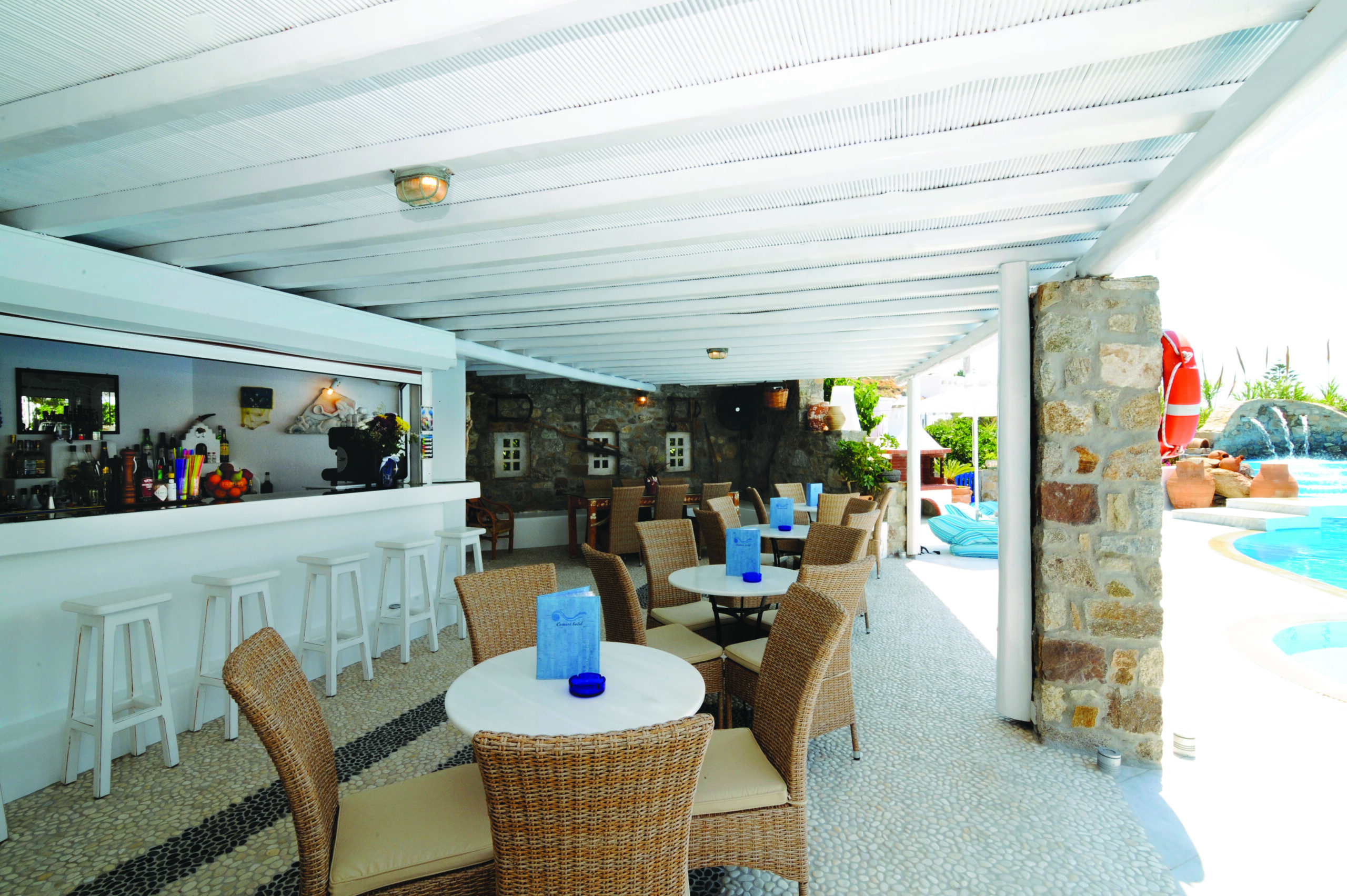Παρέχονται επίσης δωρεάν πρωινό, ένα μπαρ/lounge και μπαρ δίπλα στην πισίνα. Από την παραλία του Πλατύ Γιαλού, μπορείτε να επισκεφθείτε με καραβάκι όλες τις φημισμένες παραλίες του νησιού (Paradise, Super Paradise κλπ). Μπορείτε επίσης να συνδυάσετε τις διακοπές σας με θαλάσσια σπορ και καταδύσεις στην παραλία της Ψαρού. Τακτική συγκοινωνία συνδέει το ξενοδοχείο με την πόλη από το πρωί έως αργά το βράδυ. Κατά την άφιξη και την αναχώρησή σας υπάρχει δυνατότητα μεταφοράς.