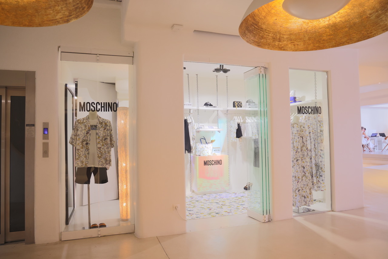 Η pop-up μπουτίκ Moschino είναι εποχιακή μπουτίκ στην οποία κανείς θα βρει τη συλλογή MOSKYNO MYKONOS, ένα όνομα που αποτελεί ένα ξεκάθαρο φόρο τιμής στο νησί.