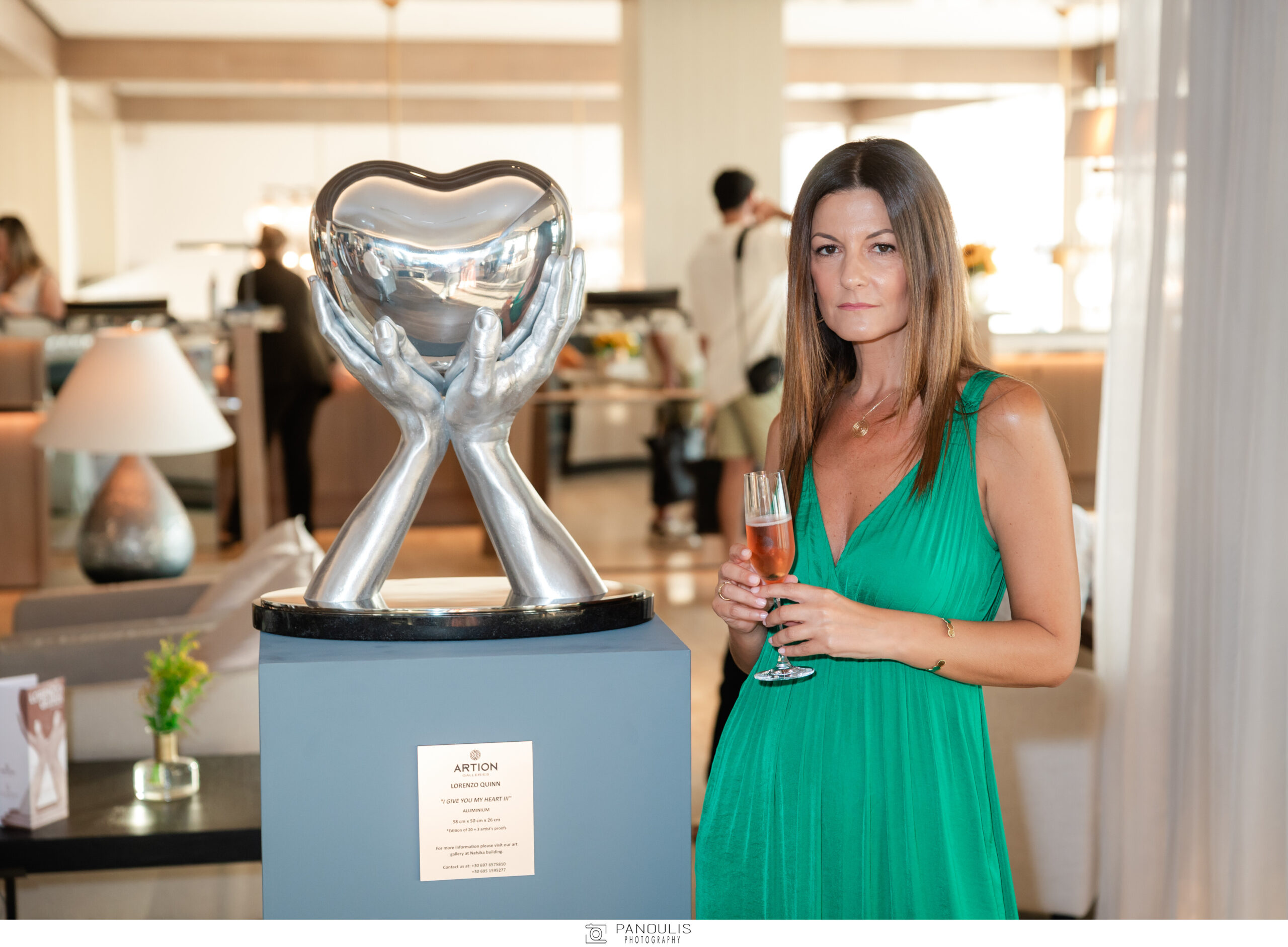 Τα γλυπτά του Lorenzo Quinn θα εκτίθενται στην πτέρυγα Nafsika του ξενοδοχείου, ενθουσιάζοντας τους επισκέπτες. Γιος του βραβευμένου με Όσκαρ ηθοποιού Anthony Quinn -ο οποίος είχε «βαθύ αντίκτυπο» στον ίδιο τον Quinn- ο Lorenzo Quinn πειραματίστηκε με τον κινηματογραφικό χώρο πριν αφοσιωθεί στο πάθος του για τη γλυπτική και την τέχνη. Οι δημιουργίες του συνήθως ξεκινούν ως ποιητικό κείμενο, το οποίο εμφανίζεται τελικά μαζί με το γλυπτό ως αναπόσπαστο μέρος του έργου, και όχι απλώς ως εξήγηση.