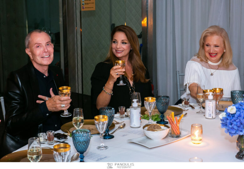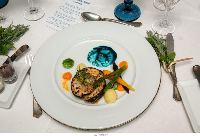 Η βραδιά ξεκίνησε με aperitif από το διάσημο One & Only prosecco DOC Brut 2019 του πολυβραβευμένου οινοποιείου Fantinel. Ακολούθησε δείπνο μοντέρνων ελληνικών γεύσεων στα χρώματα της Ελλάδας από τους σεφ του ξενοδοχείου , τον σεφ Βασίλη Μήλιο και τον sous chef Γιάννη Ντούρο. Επίσης στο set up του τραπεζιού υπήρχε για κάθε καλεσμένο ένα μπουκετάκι από βασιλικό και λεβάντα, θέλοντας να προσδώσει μια ελληνική essence στο τραπέζι.