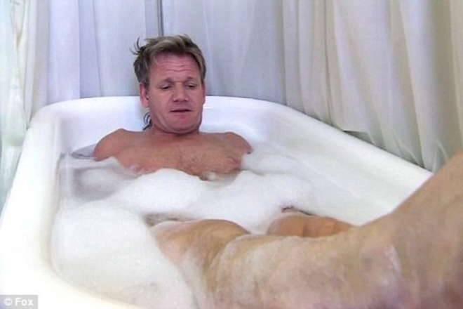 Στο επεισόδιο που προβλήθηκε αυτές τις μέρες , ο Ramsay σηκώθηκε από το κρεβάτι, έβγαλε το εσώρουχό του μπροστά στην κάμερα, μπήκε στη μπανιέρα και… χαλάρωσε κάνοντας αφρόλουτρο!
