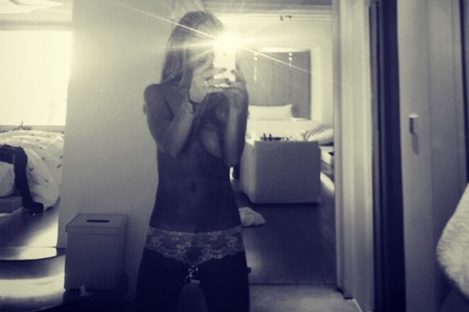 Φορώντας μόνο το κάτω εσώρουχό της και κρύβοντας με τα χέρια της το στήθος της έβγαλε μπροστά στο καθρέπτη της αυτή τη φωτογραφία η οποία τρέλανε το διαδίκτυο και δικαιολογημένα!