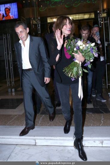 Το πρώην προεδρικό ζευγάρι της Γαλλίας, το οποίο επισκέπτεται τη χώρα μας με αφορμή τις δύο συναυλίες που δίνει η Carla Bruni στο πλαίσιο της περιοδείας για την προώθηση του νέου άλμπουμ «French Touch», δεν έκρυβε τη χαρά του από την ανταπόκριση του αθηναϊκού κοινού και ήταν συνεχώς χαμογελαστό.