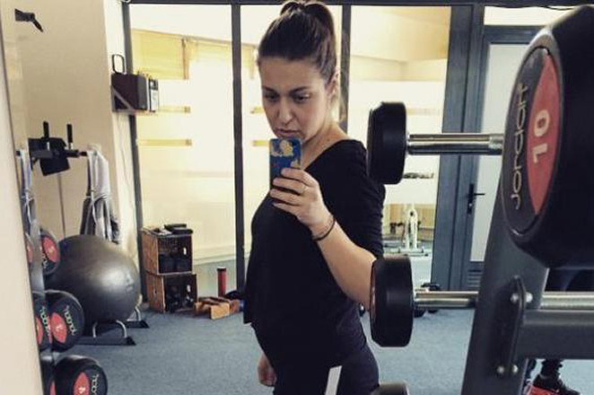 Instagram μία φωτογραφία της στην οποία αφενός διακρίνεται η φουσκωμένη κοιλίτσα της, αφετέρου μέσω αυτής δηλώνει ότι παρά την εγκυμοσύνη δεν έχει αλλάξει τίποτα από τις συνήθειές της.