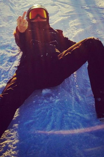 Σκι στα χιόνια ήθελε να κάνει γνωστή τραγουδίστρια, όμως έφαγε μια μεγαλοπρεπέστατη τούμπα και πάνω στα νεύρα της έκανε αυτή την άσεμνη χειρονομία.