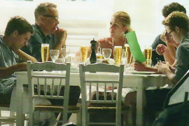 Την ηρεμία και την «ασφάλεια» του σπιτιού τους στην Αντίπαρο άφησαν για λίγο ο Τομ Χάνκς και η Ρίτα Γούλσον, για μια βραδινή έξοδο στην Πάρο, έχοντας μαζί τους τον γιο τους Τρούμαν και μερικούς φίλους του.