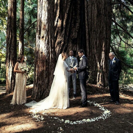 Το σκηνικό που διάλεξε το ζευγάρι για την ευτυχέστερη μέρα της ζωής του ήταν σαν βγαλμένο από παραμύθι, αφού το ζευγάρι ενώθηκε με ιερά δεσμά του γάμου μπροστά από ένα μεγάλο δέντρο στη μέση του δάσους.