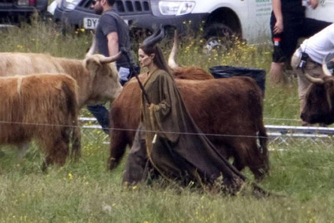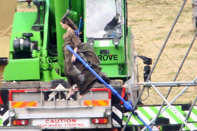 Φορώντας κέρατα στο κεφάλι και ένα μακρύ καφέ φόρεμα, η ίδια δείχνει να ακροβατεί με πλήρη αυτοπεποίθηση την ώρα που ο γερανός τη σηκώνει αρκετά μέτρα ψηλά από το έδαφος. « Έχουμε δει πολλούς ηθοποιούς να προσπαθούν να κάνουν ακροβατικά κατά την διάρκεια των γυρισμάτων, αλλά κανείς δεν τα καταφέρνει τόσο καλά όσο η Αντζελίνα. Είναι ο κατάλληλος άνθρωπος για τέτοιες ακροβατικές σκηνές. Ό,τι κάνει το κάνει για τον εαυτό της και γιατί της αρέσει» λέει ο συντονιστής Simon Crane.