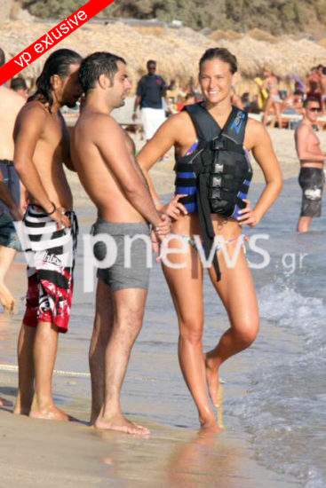 Το διάσημο μοντέλο έφθασε στη Μύκονο την Δευτέρα μαζί με πέντε άνδρες φίλους της, που τη συνόδευαν για να την προστατεύουν από τους θαυμαστές της και να κάνουν καλή παρέα μαζί. Αναμεσά τους είναι οι ηθοποιοί Shalom Michaelsvili, Assi Ιsraelof και Zion Βaruch ηθοποιοί που αποτελούν το διάσημο στη χώρα τους τρίο κωμικών “ma cashor”. Οι δυο πρώτοι είναι δεσμευμένοι μόνο ο τρίτος είναι ελεύθερος, αλλά όλοι τους έχουν καθαρά φιλική σχέση μαζί της, όπως μας αποκάλυψε έγκυρη δημοσιογραφική πηγή από τη χώρα καταγωγής της.