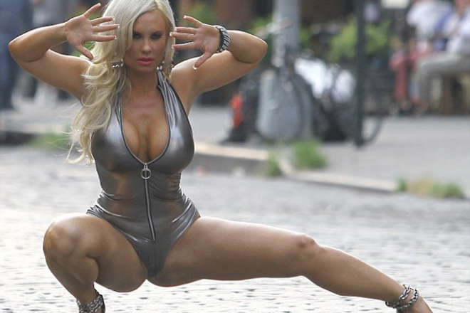 Η τηλεπερσόνα πήρε πόζες που μάλλον παραπέμπουν σε κιζενικές πολεμικές τέχνες αλλά παράλληλα δείχνουν και αρκετά προκλητικές.