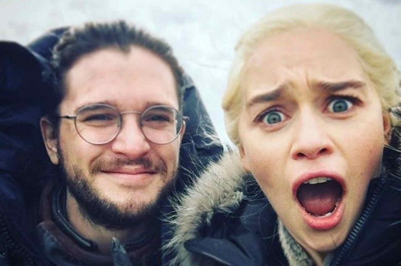 Η γνωστή ηθοποιός και ο Kit Harington, έβγαλαν μια selfie στην οποία τη βλέπουμε να κάνει γκριμάτσες ή πιο συγκεκριμένα να δείχνει φοβισμένη στη θέα του συμπρωταγωνιστή της, ο οποίος φορά γυαλιά μυωπίας.